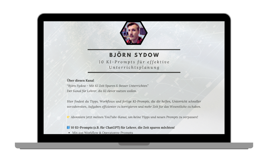 Ich bin Björn Sydow, selbst Lehrer und ich zeige dir, wie du Künstliche Intelligenz (KI) clever im Unterricht einsetzen kannst.